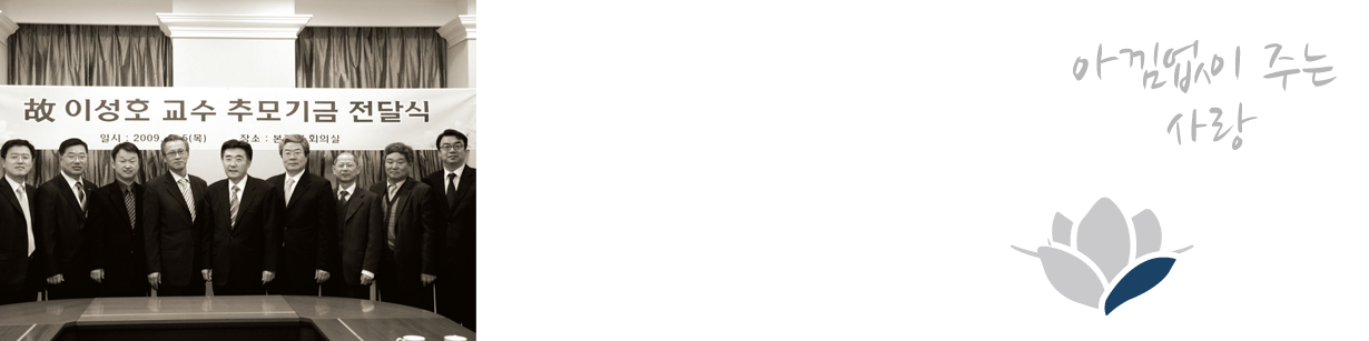 故 이성호 교수가 각별한 사랑과 열정을 쏟았던 공인회계사반, 학창시절 스승에게 듬뿍 받았던 사랑을 모교의 후배들에게 전달하고자 하는 회계학과 동문회와 경공회. 이들이 바라는 것은 한결 같다. 이제 선배들이 조금이나마 힘을 보탤테니, 후배들은 열심히 노력해서 우리학교를 더욱 빛내달라는 것이다.