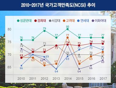 국가고객만족도(NCSI) 조사 결과, 15개 주요 사립대 중 최상위권